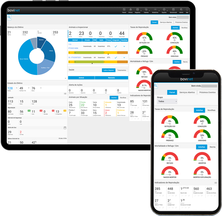 As taxas de Deteção de Cio, Conceção e Prenhez são o barómetro do maneio diário e permitem acompanhar a performance das tomadas de decisão, bem como os Indicadores Reprodutivos como Dias em Leite, Dias em Aberto, Intervalo entre Partos, etc.